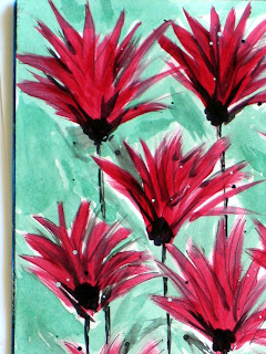 On a happier note... I ordered some Dylusions ink sprays by Ranger, and I LOVE them! The colors are SO Vibrant! SO bright and cheery! It's remarkable stuff. You can ghost images into the ink just by using water...very cool. Watch a video from Ranger, or Dyan Reaveley and you'll see why I love these sprays! I plan on playing all weekend with these beautiful colors, some stencils and stamps, and hope I actually journal a page or two!